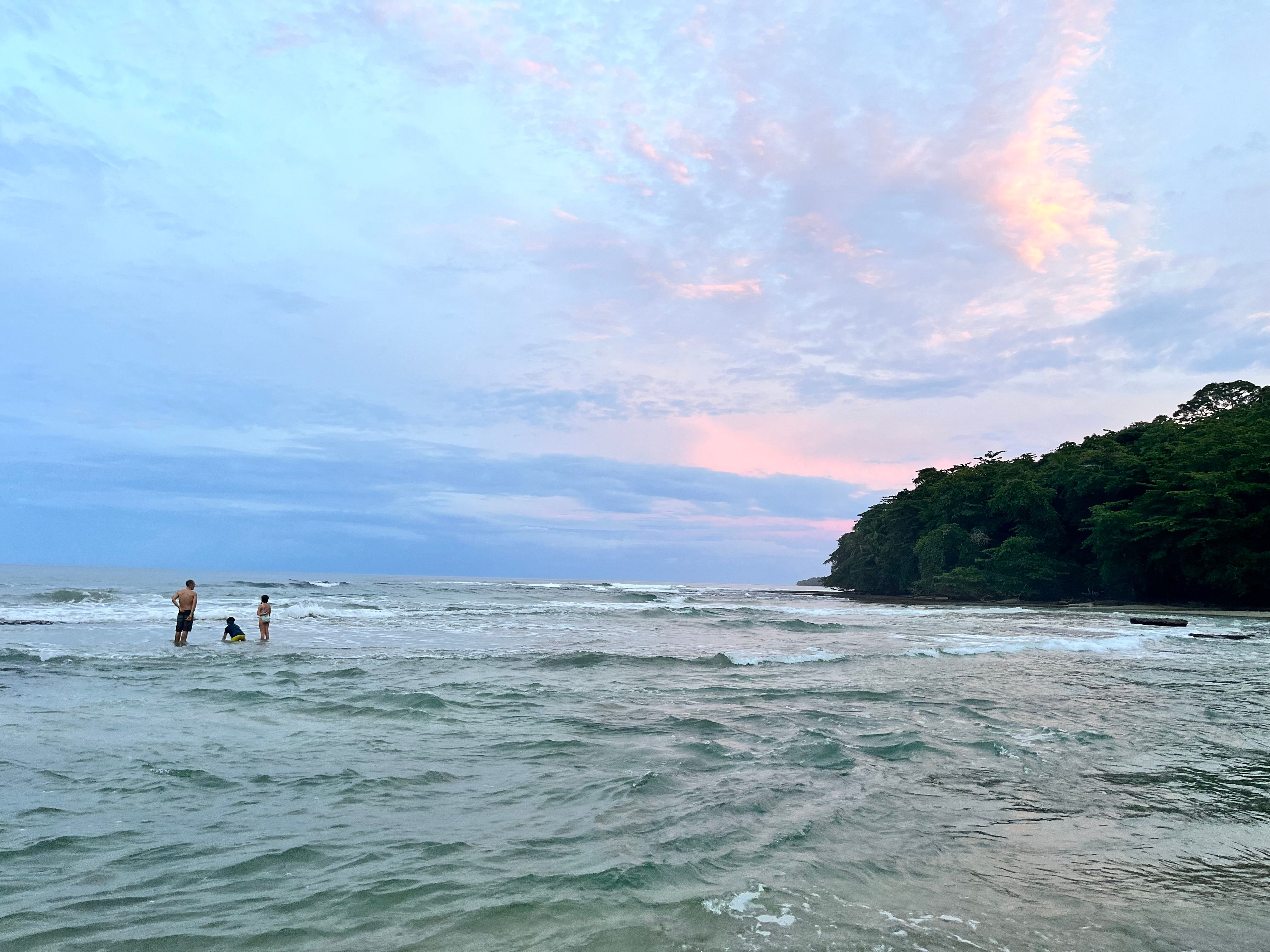 Our first trip to the Caribbean as a family was super sweet. We stayed in a great little cabin in Playa Chiquita, just south of Puerto Viejo. I haven't been back to this side of Costa Rica in 20 years so it was wild to see all of the changes. Play Chiquita was just a short walk away from our place. Once we arrived, we decided to go investigate:) The kids, armed with a bucket and their flip flops, led the way. We arrived at sunset and found the waters to be tranquil and sweet. The currents are notoriously super strong there so we took good care to be safe and played until it was dark!