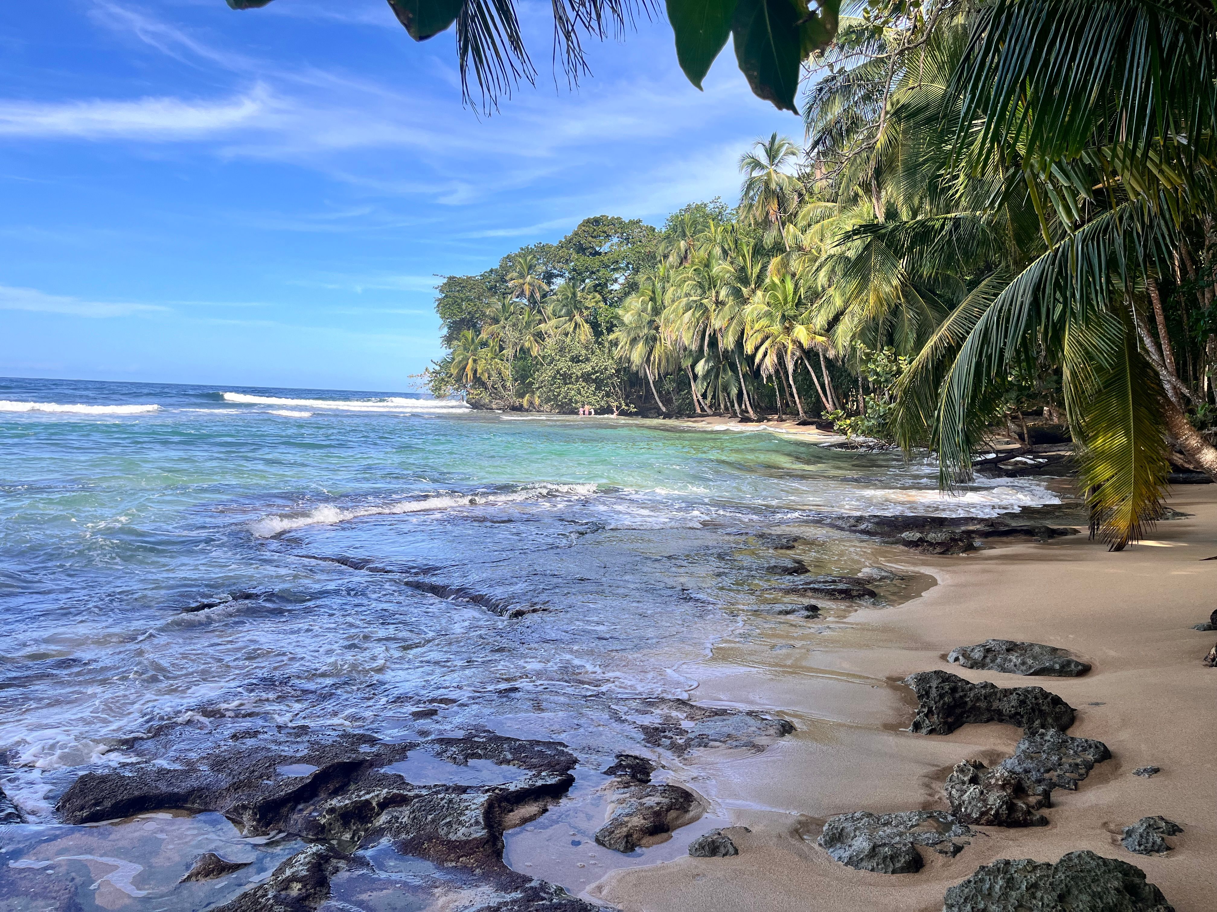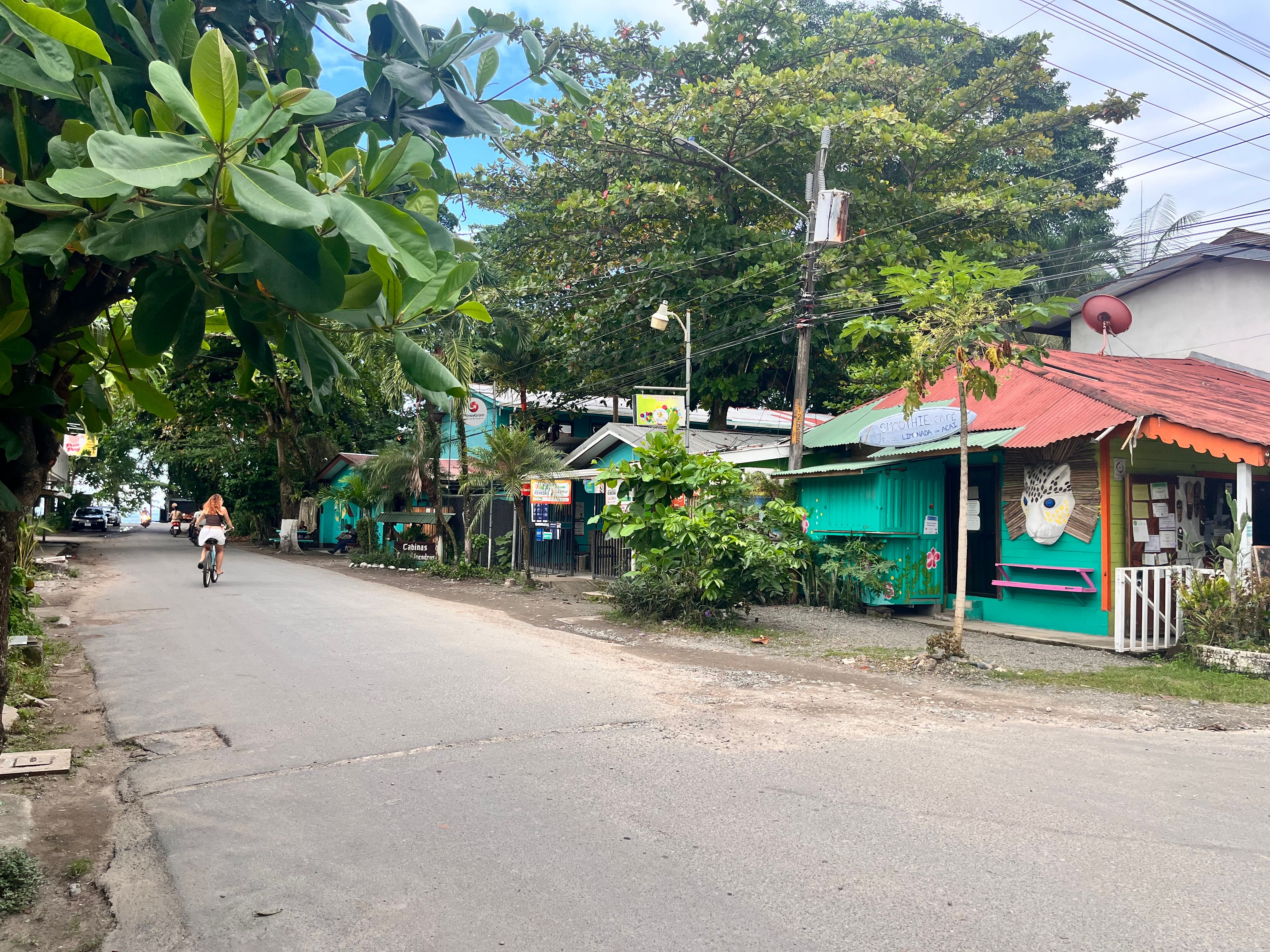 The next day we went to playa Cocles to play in the ocean. Didn't take any pictures there but it was a bit of a wild swim. The currents were super strong and the lifeguards were really strict. For good reason. We were allowed to swim in front of one flag but often found ourselves much further down the beach. The lifeguards were all paying close attention and we were grateful for their guidance. The currents changed quick and it was fun, but not always relaxing! We swam long enough to tire ourselves out, bodysurfed some of the bigger waves and then went home to relax before heading into Puerto Viejo. I missed the carribean colors and how deep the jungle feels on this side.