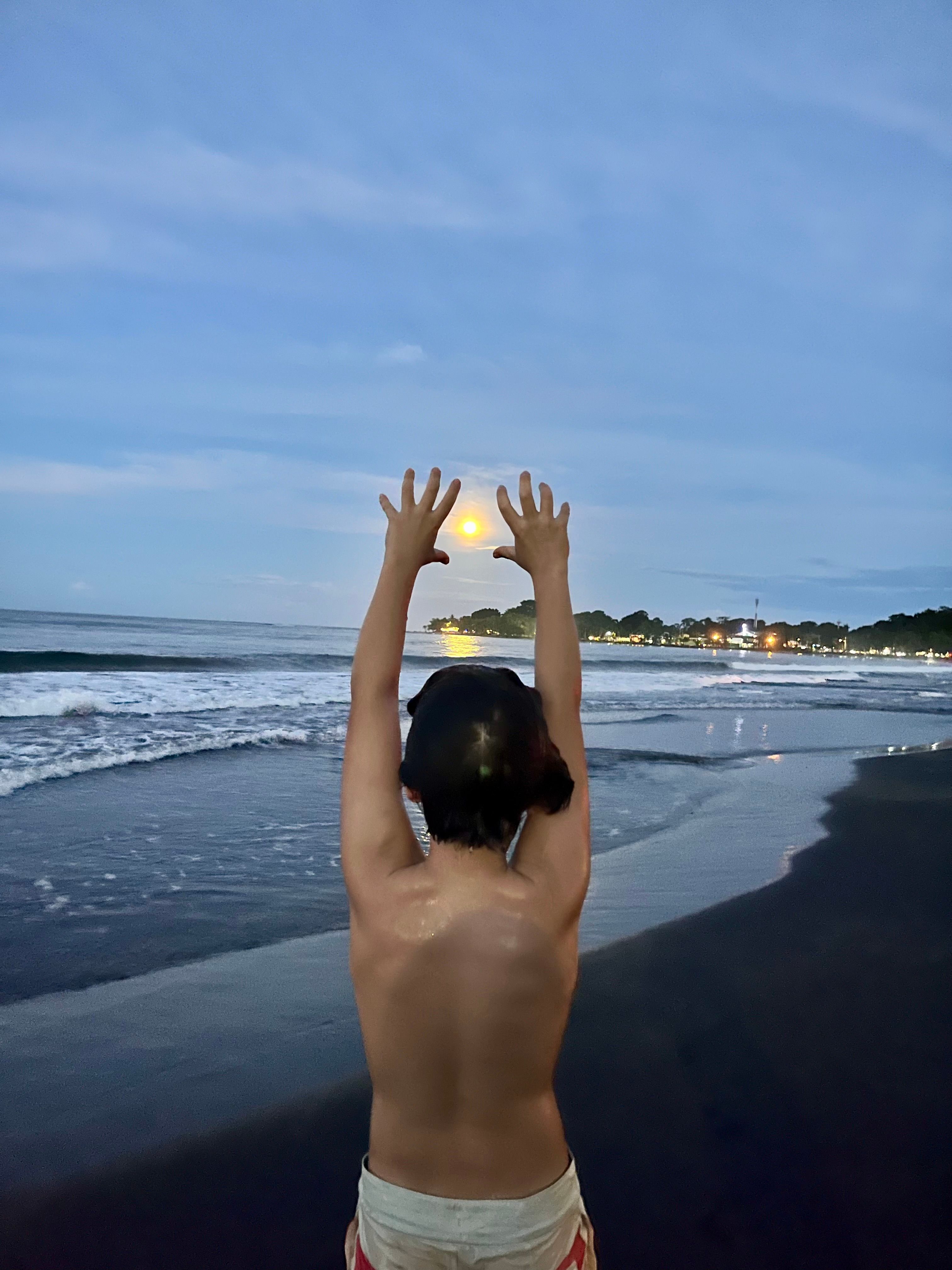 It did not disappoint. First, the beach is volcanic black sand. Amazing. Second, it was the super moon rising and we were in the most incredible place to see it happen.
